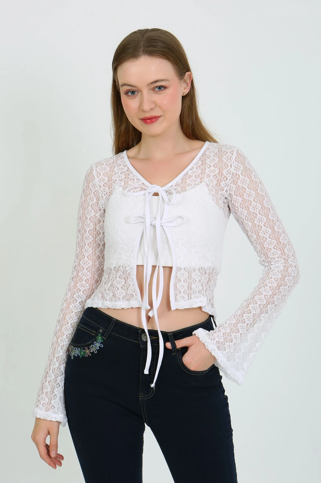 Amelia Dantelli Beyaz Kol Detaylı Hırka